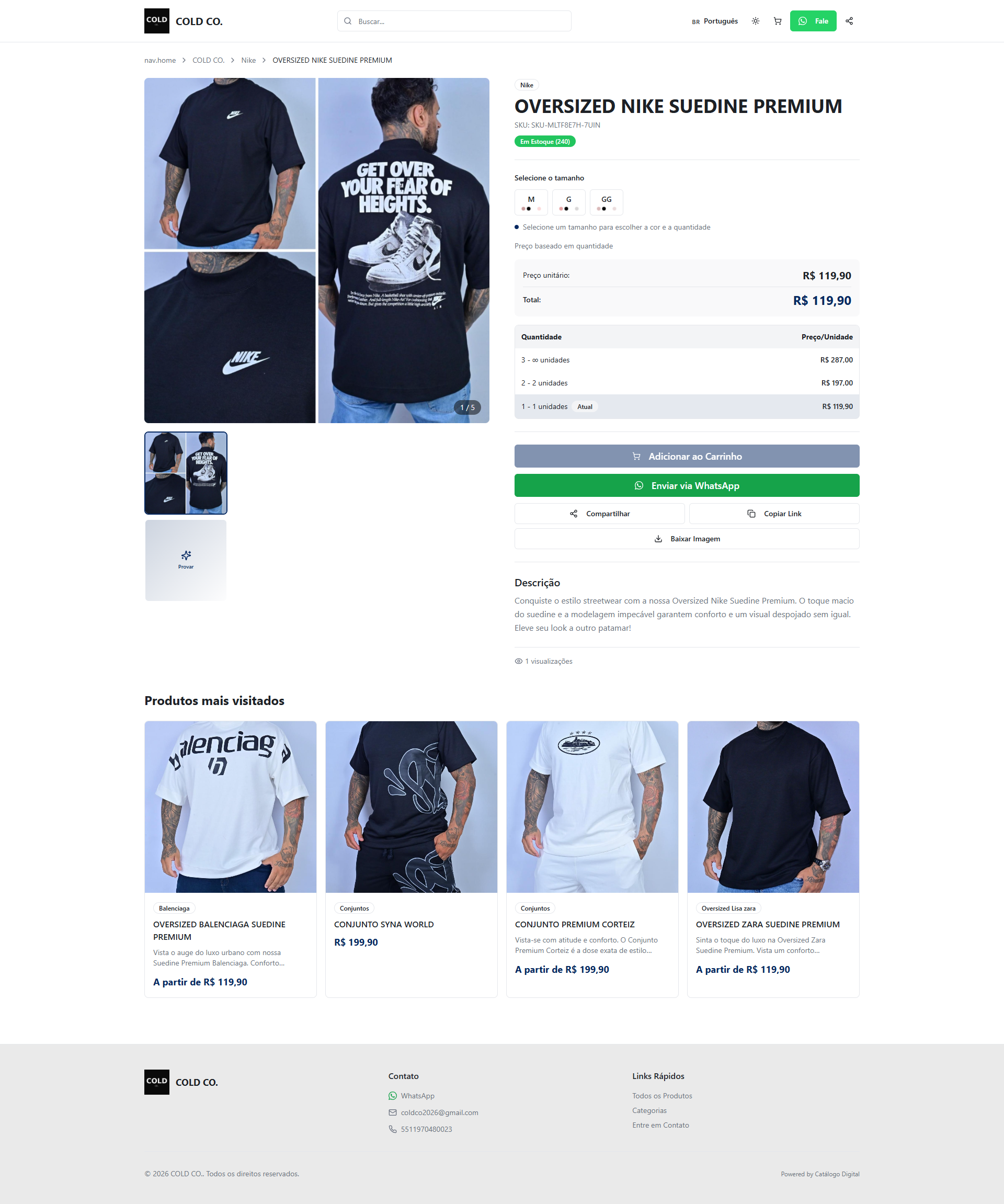 Vitrine profissional com fotos e preços. Pedidos direto no WhatsApp.